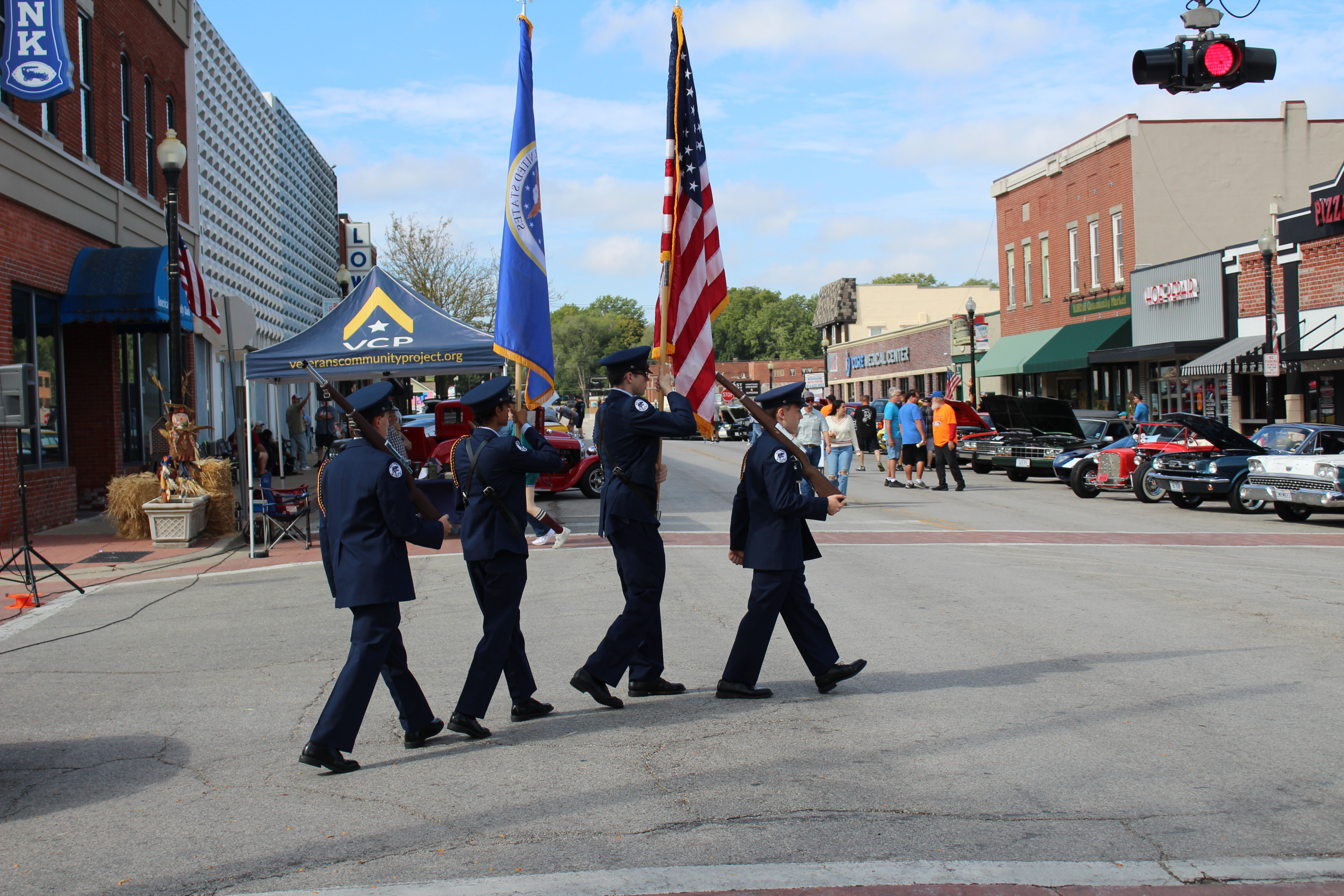 At every show, the Midwest Blue Oval Club honors the veterans and active duty military personnel. The Blue Springs High School Air Force JROTC and their instructor, AF MSGT (Ret) Kyle Douglass presented our nations colors followed by the National Anthem. After the National Anthem, we do a reading about a significant point of military history, this was the 50th Anniversary of the end of the Viet Nam war. Below is the text from the reading: