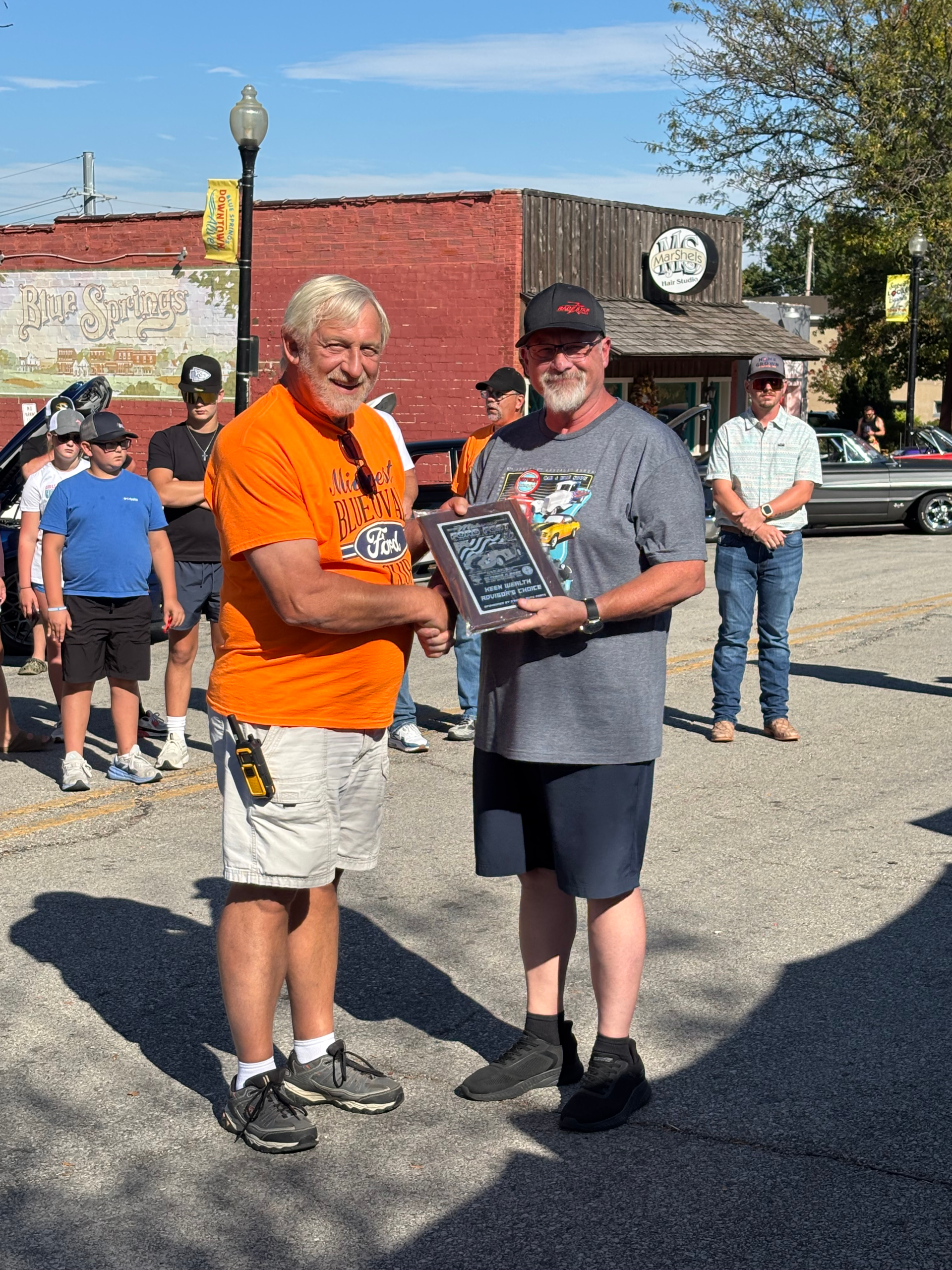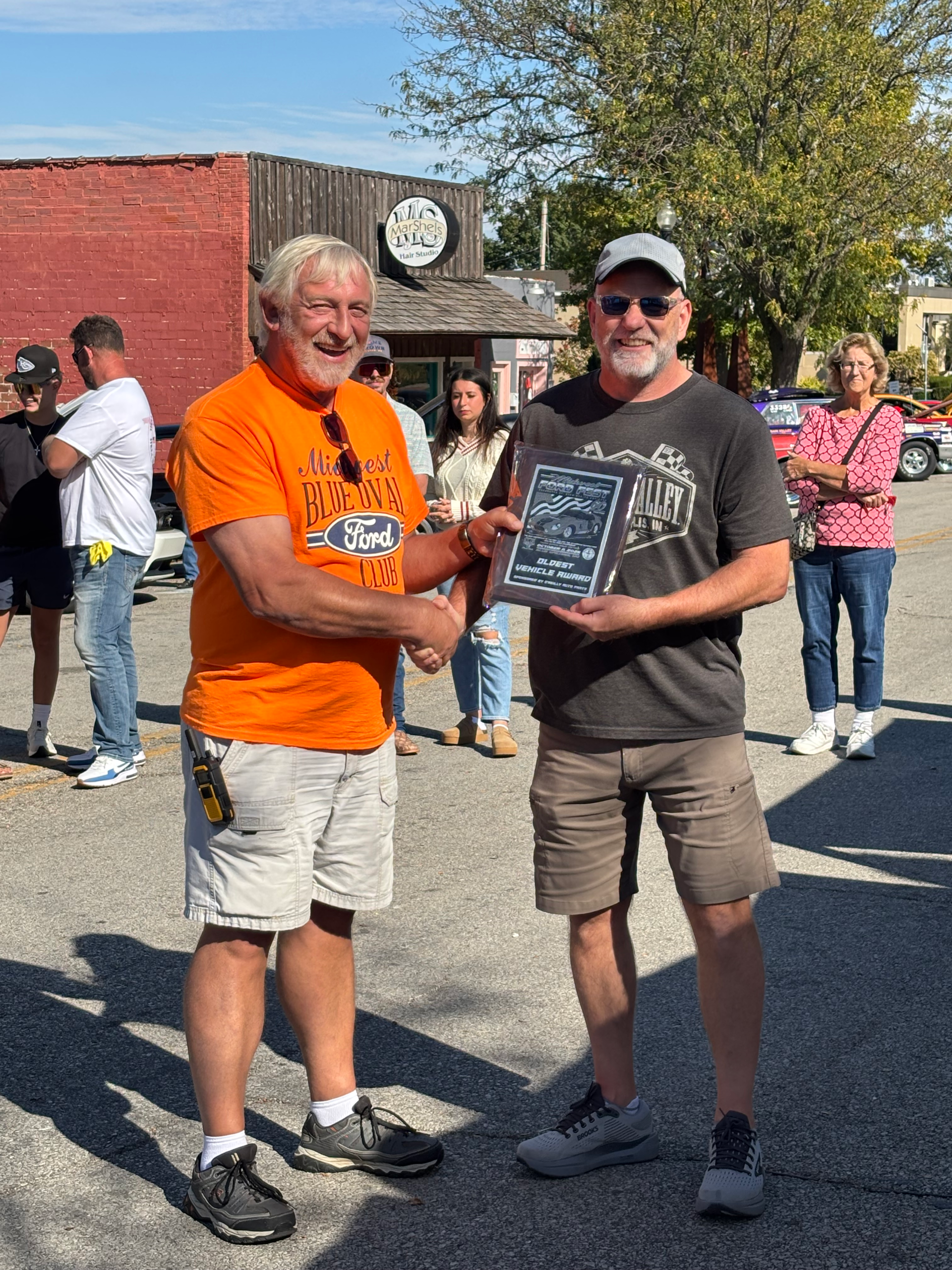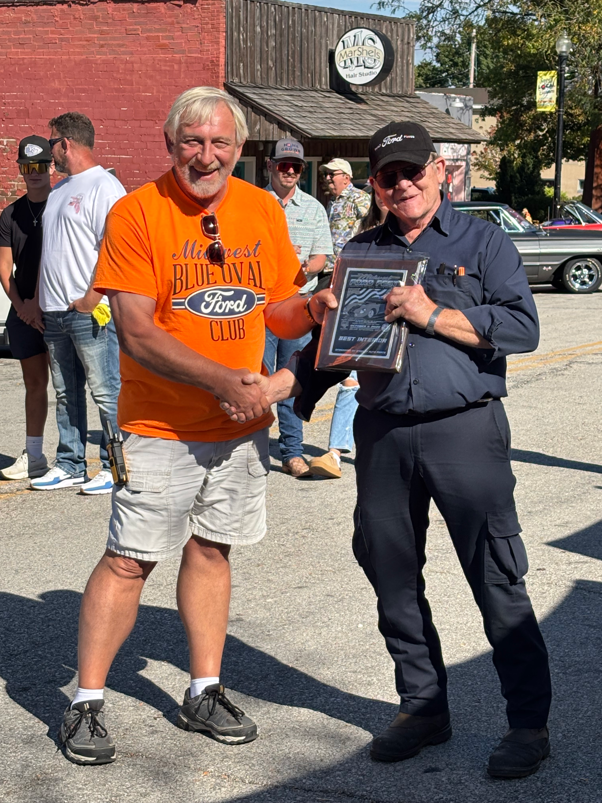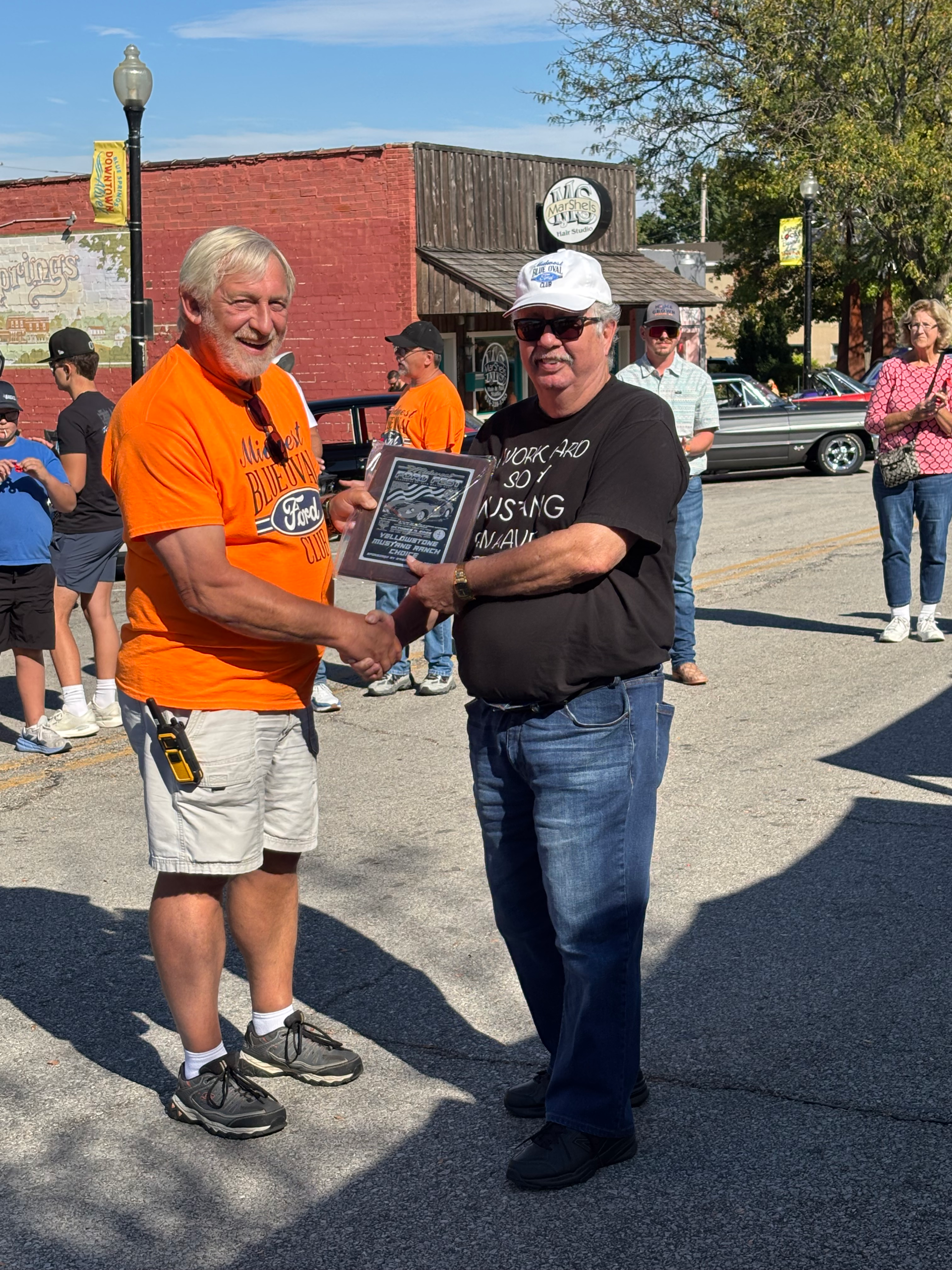 The Midwest Blue Oval Club is recognizing the veterans and active-duty personnel of our armed forces. We have some plagues to be presented to those veterans and active-duty personnel. This is our way of showing our appreciation to those who fight and have fought for the freedom of our country that we enjoy today.