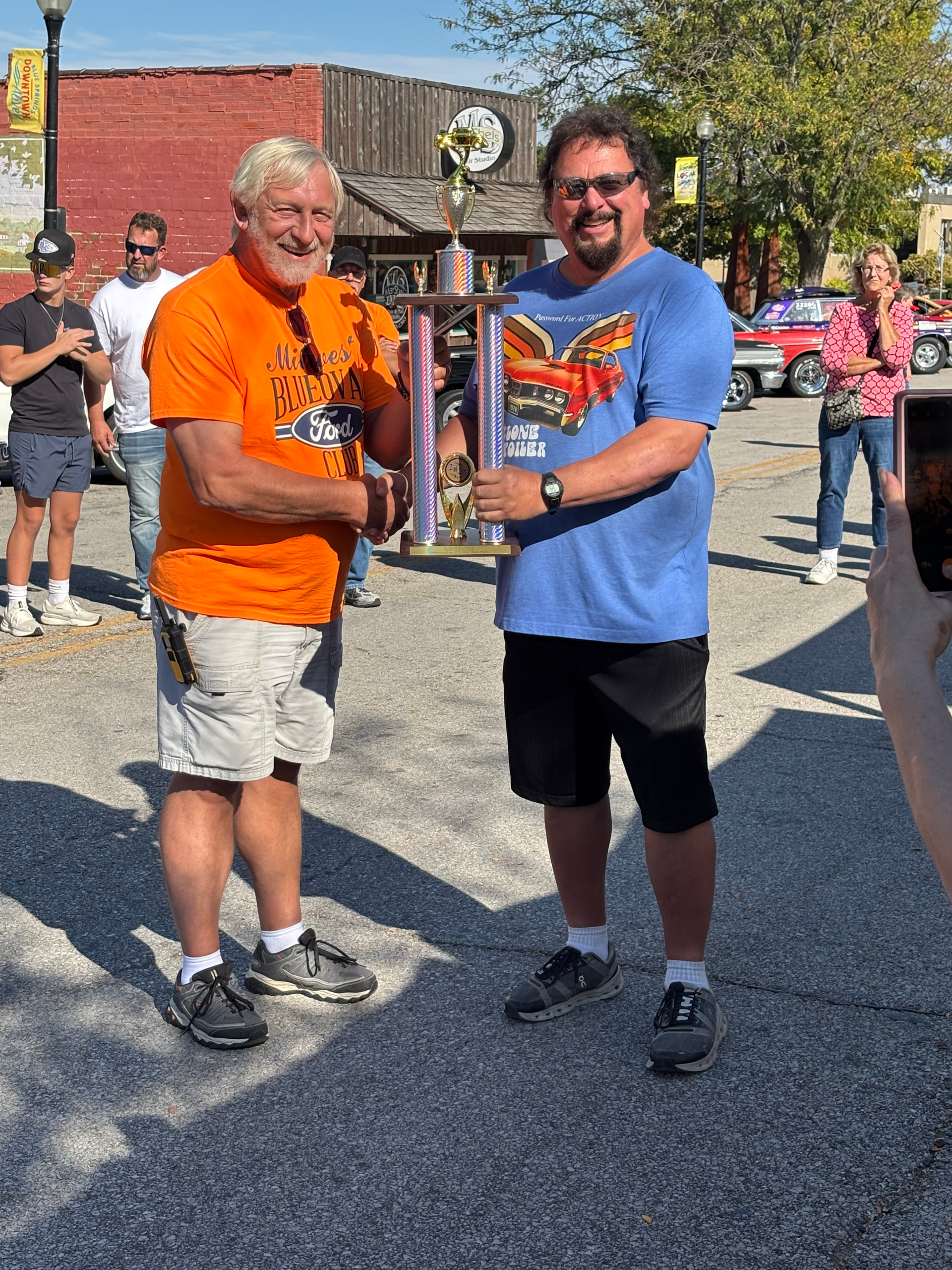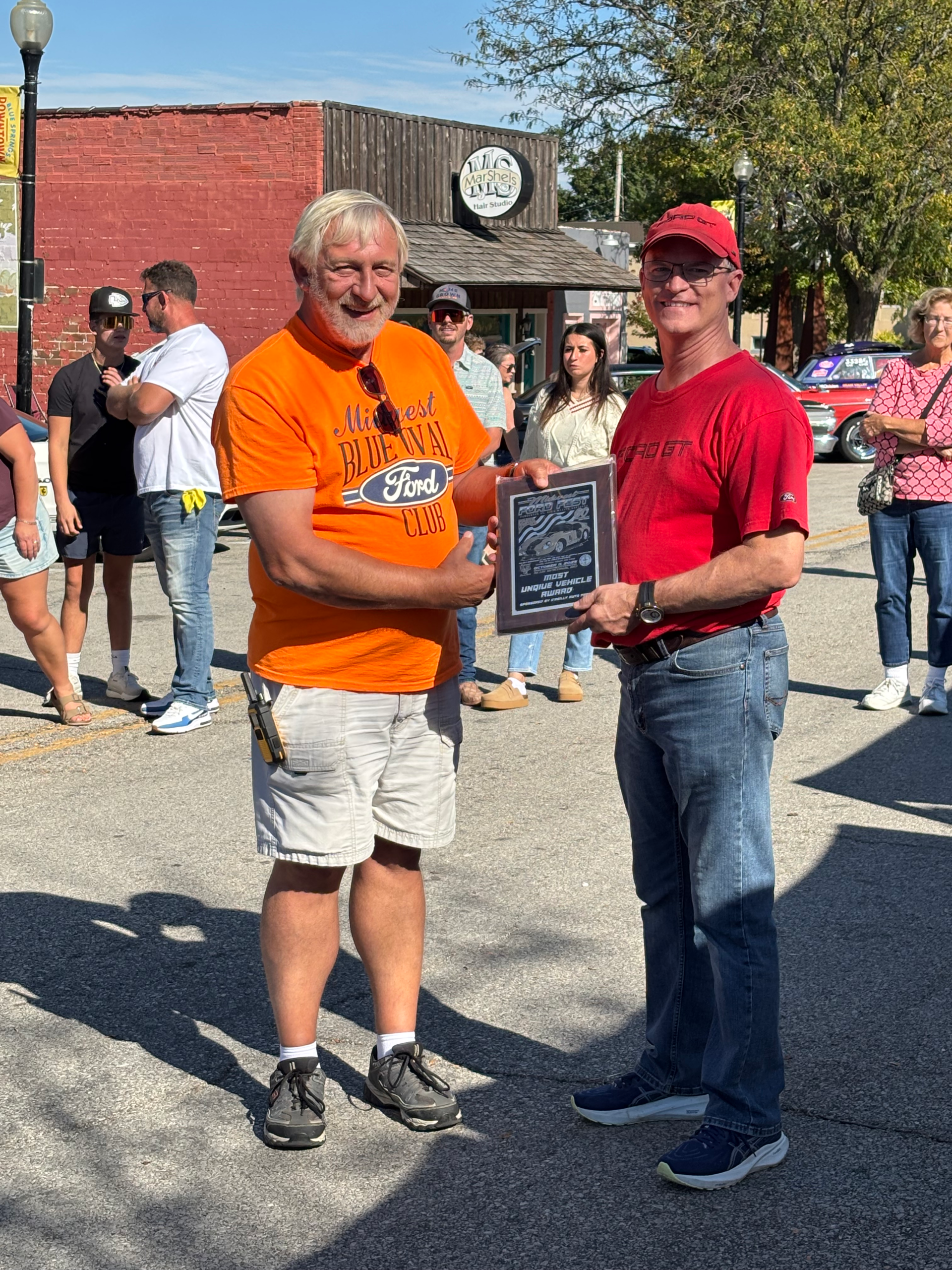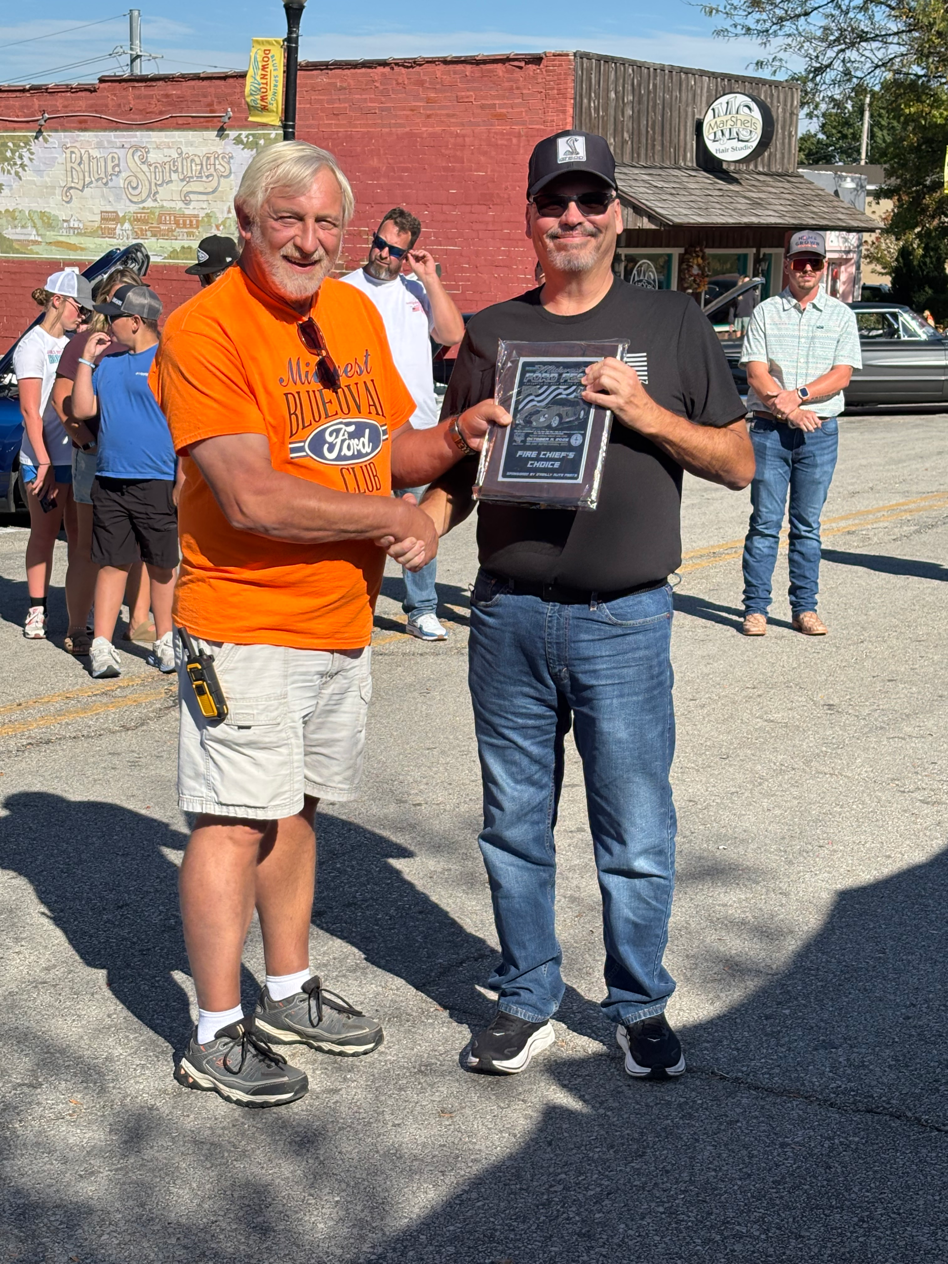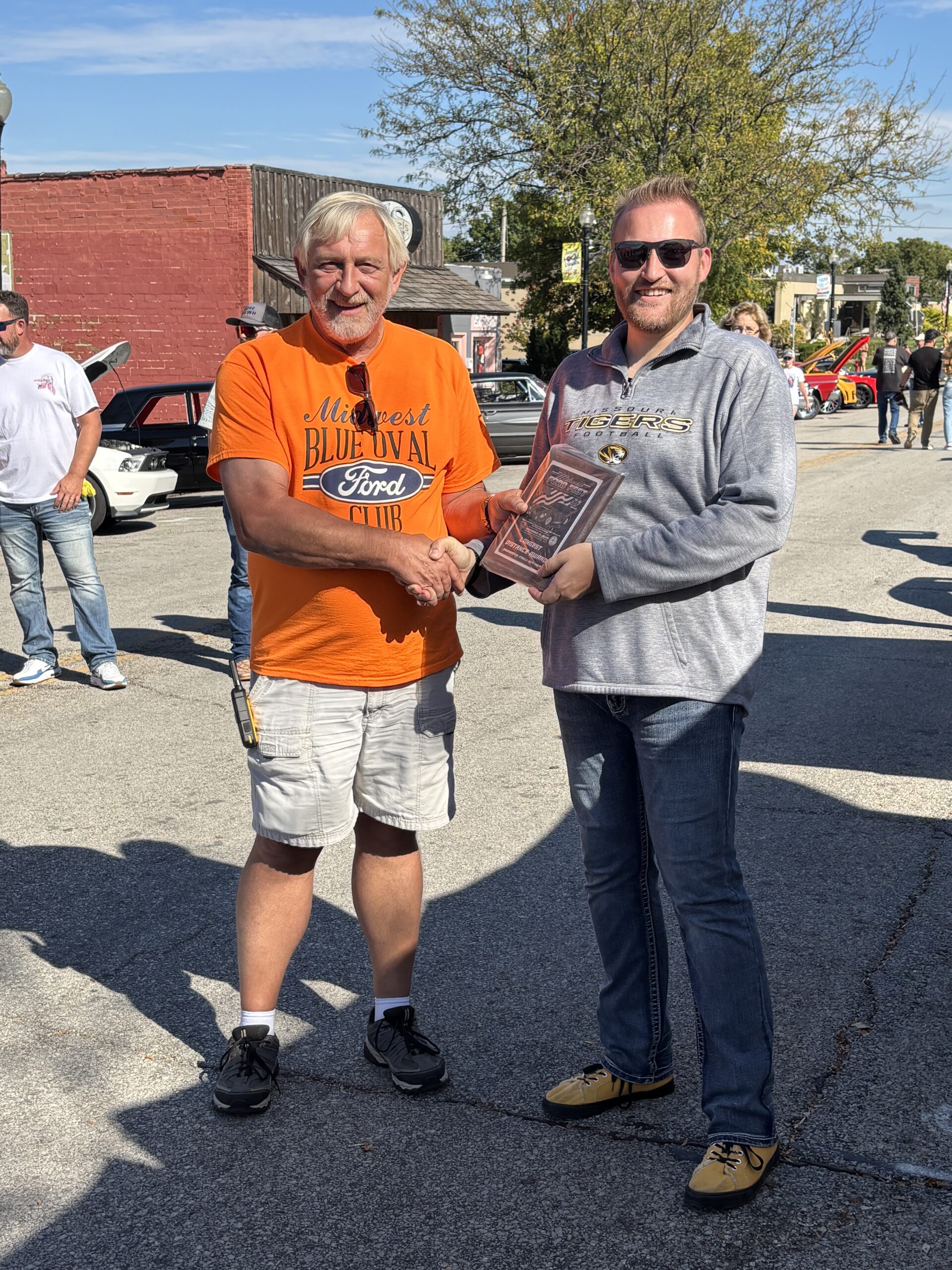 The Midwest Blue Oval Club is recognizing the veterans and active-duty personnel of our armed forces. We have some plagues to be presented to those veterans and active-duty personnel. This is our way of showing our appreciation to those who fight and have fought for the freedom of our country that we enjoy today.
